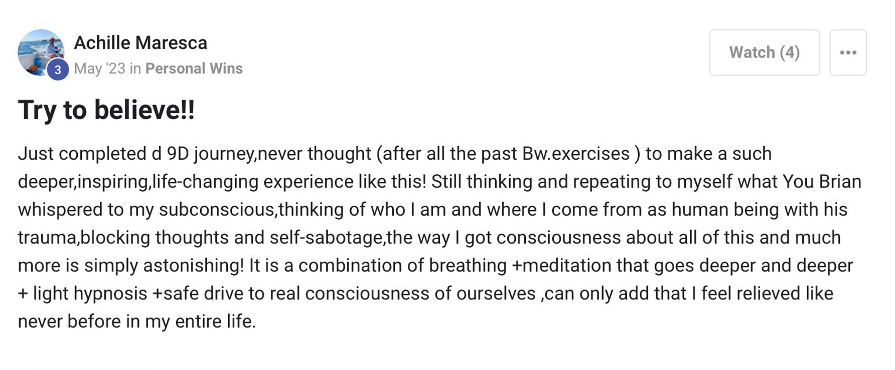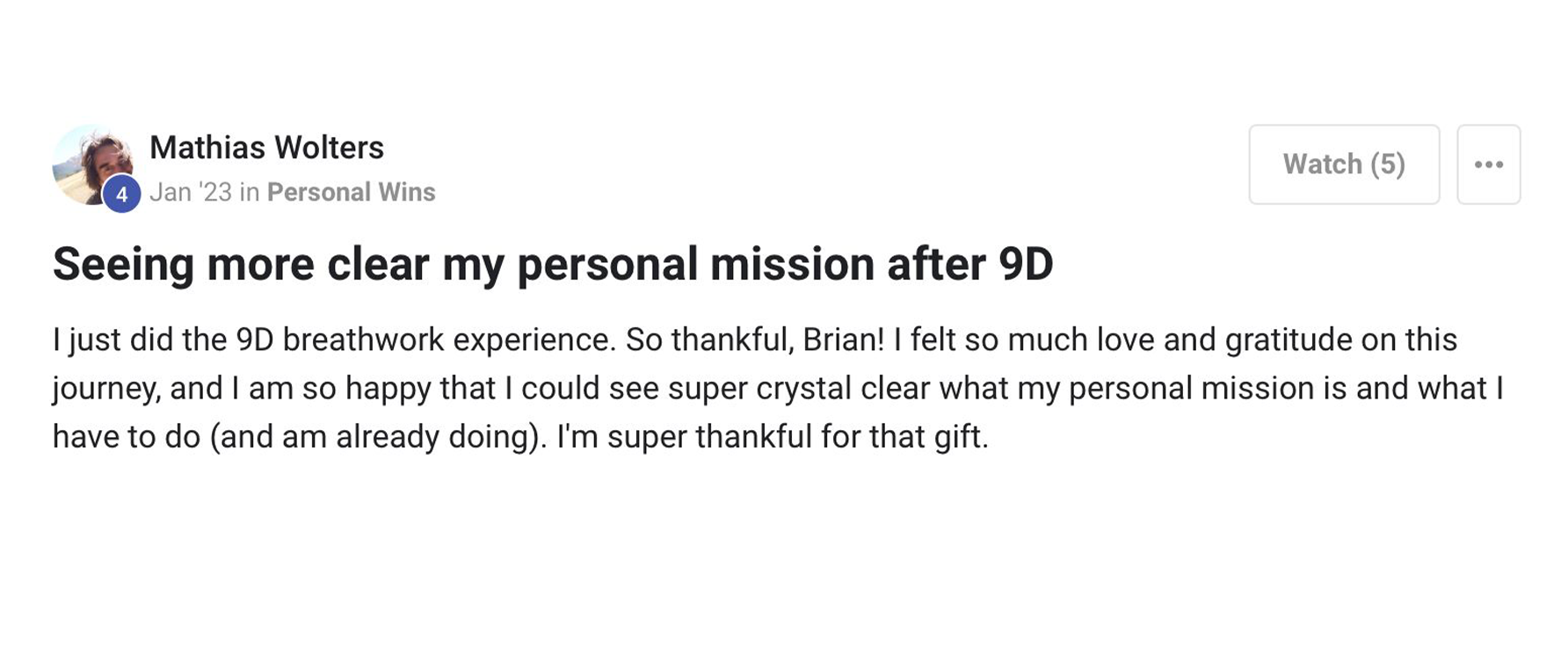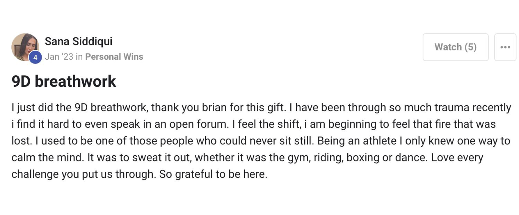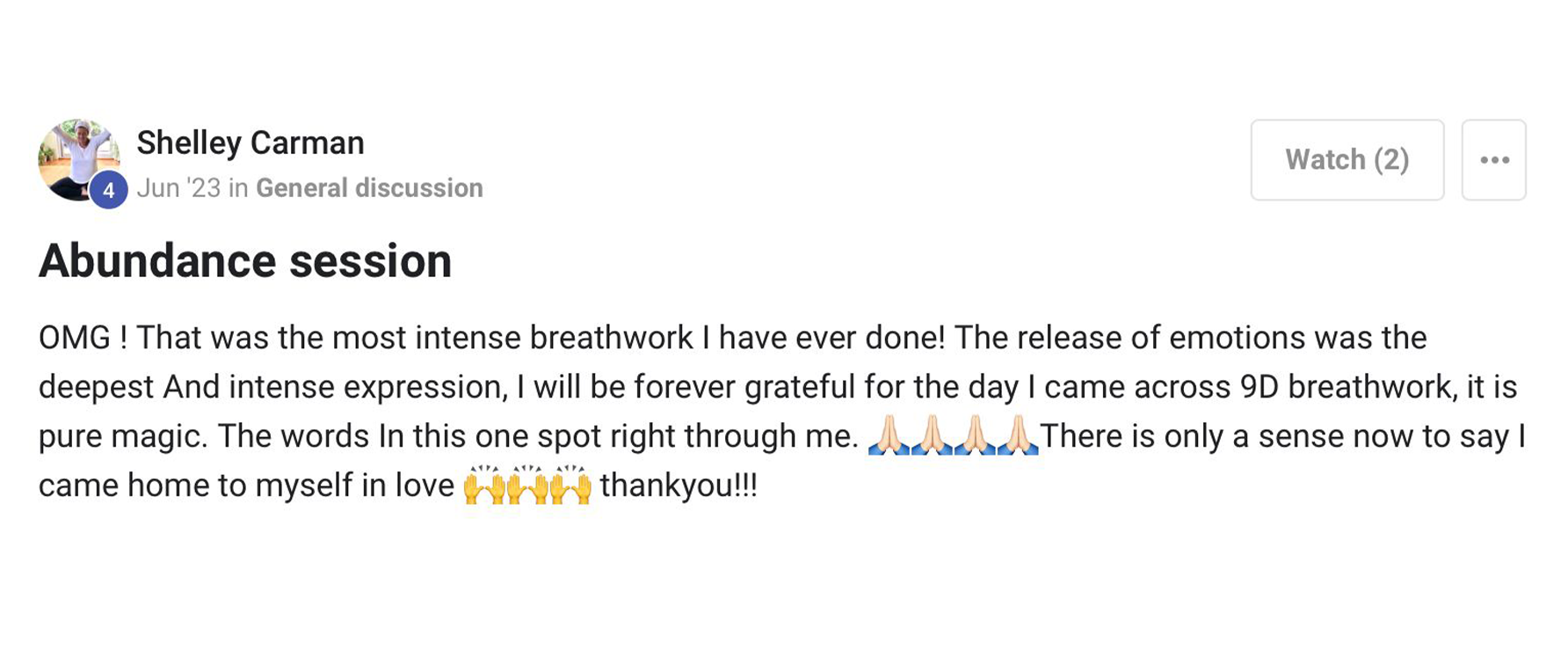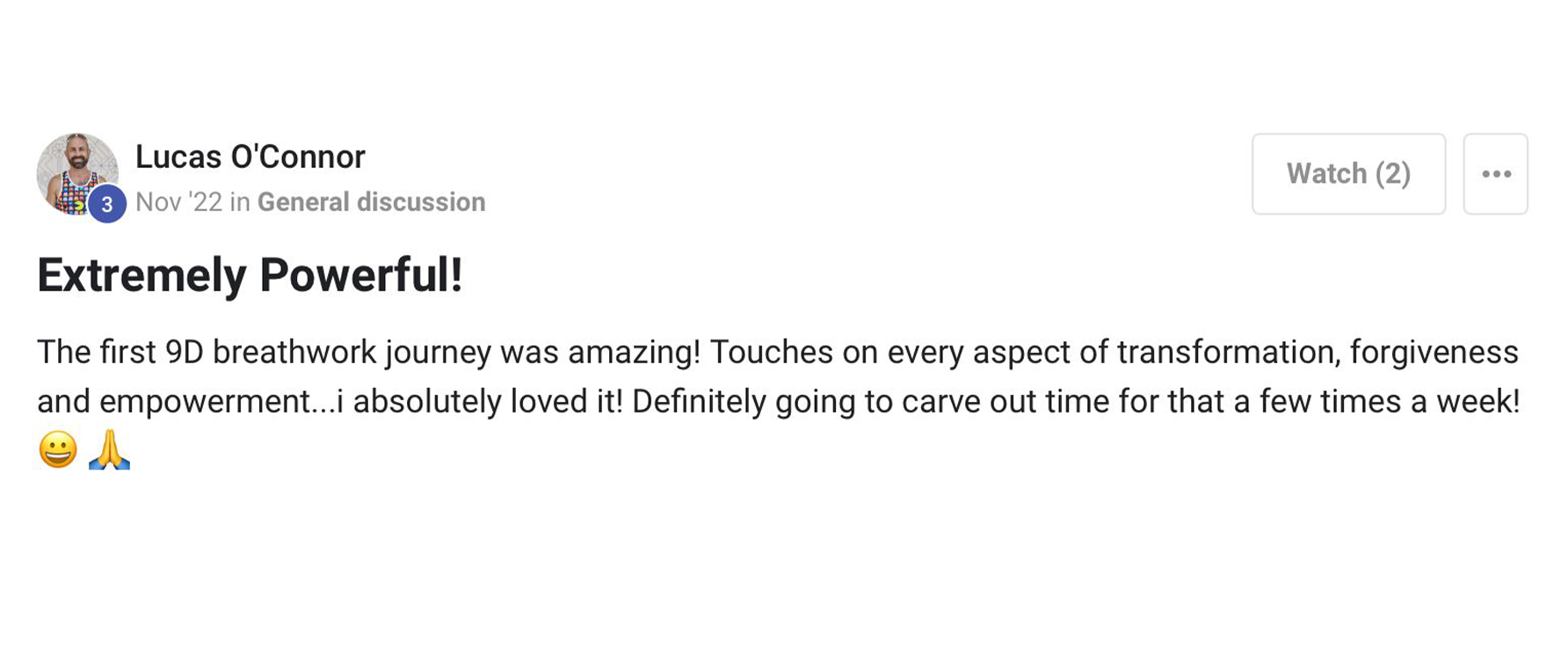 That’s why we’ve built the 9D Breathwork Community, to offer you more resources to get the breathwork habit to stick, more journeys so you can experience deeper, more powerful results, and more community to give you the support you need along the way.